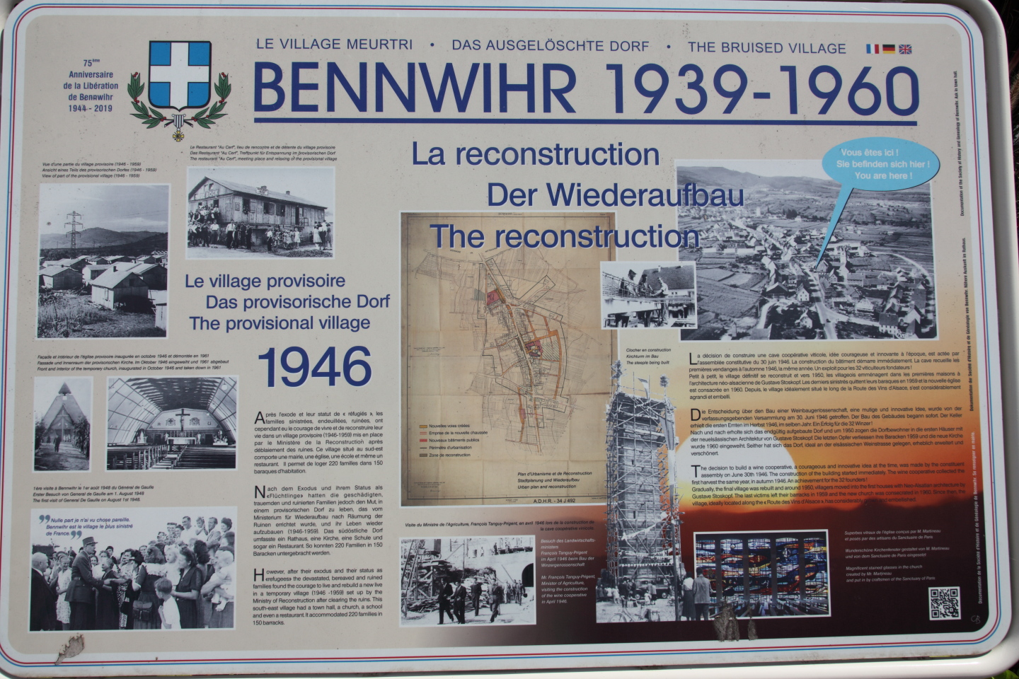 Dieses Dorf , das seit der Jungsteinzeit bewohnt war, wurde während der Kämpfe im Kessel von Colmar 1945 vollständig zerstört. Zwischen 1947 und 1959 wurde es im lokalen Stil vom Architekten Gustav Stoskopf neu aufgebaut.