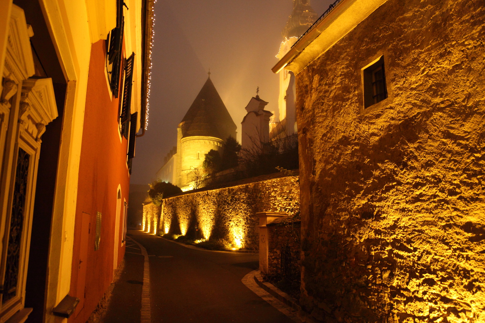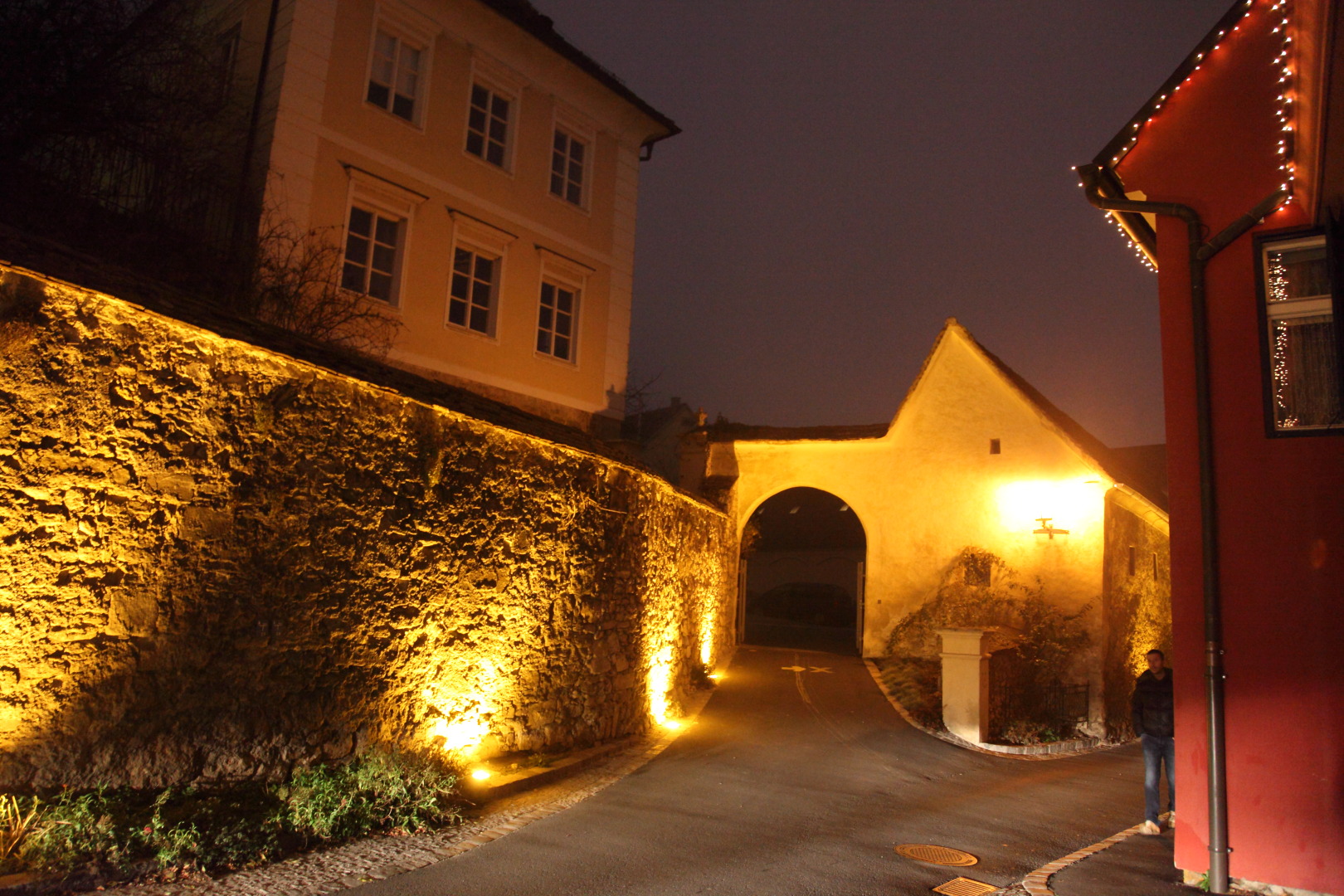 In der Enge dieser Gasse spürt man das mittelalterliche Flair. Ihr Name leitet sich vom Karner des heiligen Michael ab, der im Hintergrund zu sehen ist.